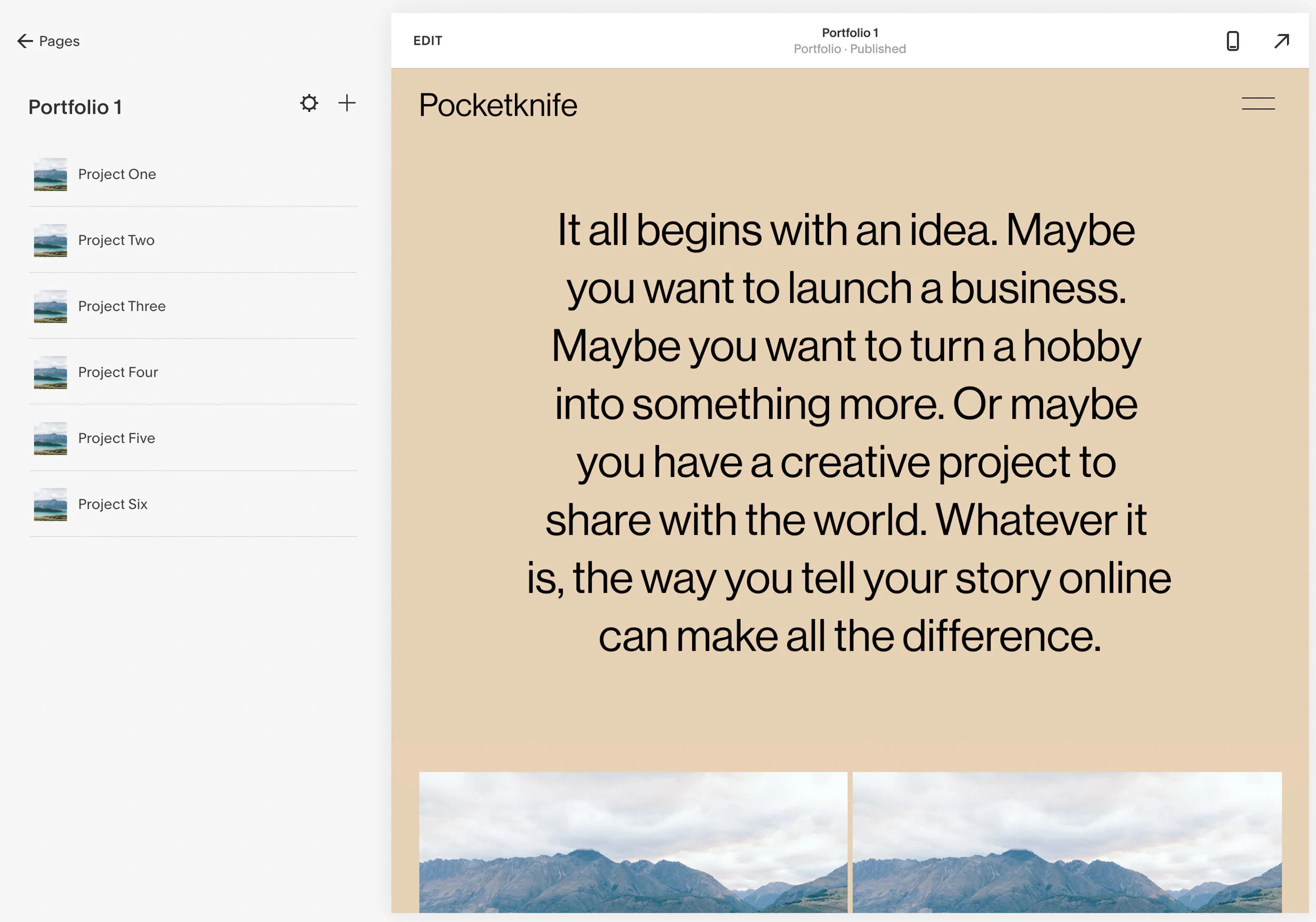 Here at Pocketknife, a lot of our clients need beautiful portfolio websites that are easy to update and look great at the same time. This is why 7.1’s introduction of “Portfolio Pages” is a welcome addition. In 7.1 a Portfolio Page is basically a collection page with links to sub-pages. Each “sub page” can essentially be an individual project page or work example.